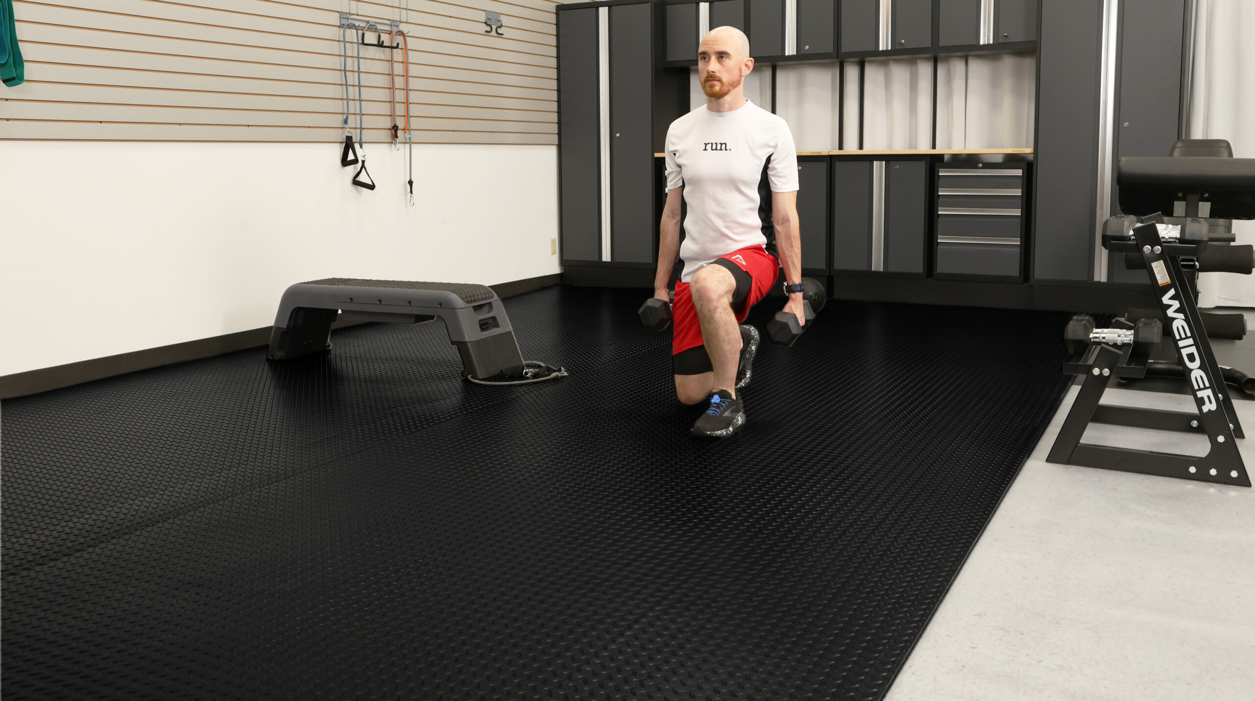 Hard floors like concrete put stress on knees, hips, and ankles. Having flooring that provides shock absorption reduces impact during HIIT exercises, weightlifting, stretching, and cardio.