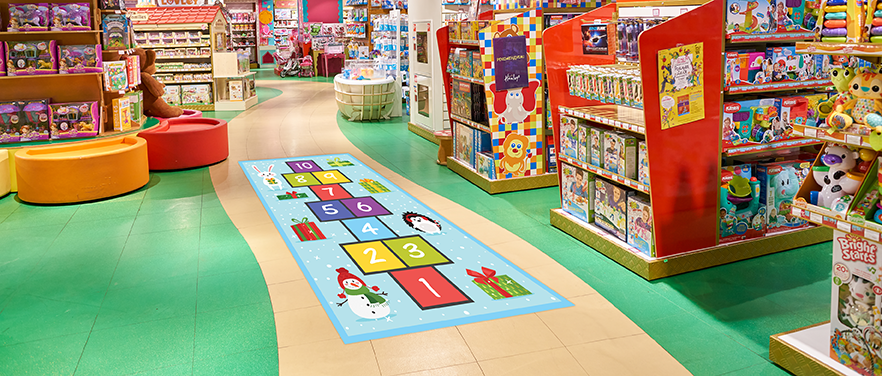 The answer is under your feet! Create an environment that your customers will love. Whether you are using brightly colored graphics as a source of way finding, placing a large custom graphic in the middle of your high traffic areas, or showcasing your brand, G‑Floor Graphic print media is the product that will bring your concepts to life. With G‑Floor Graphic, you can make a positive impression with lasting durability. Stand out from the competition by thinking outside of the box. Don’t just tell them, show them! Get the conversation going amongst your customers and leave them talking about you long after they have left.