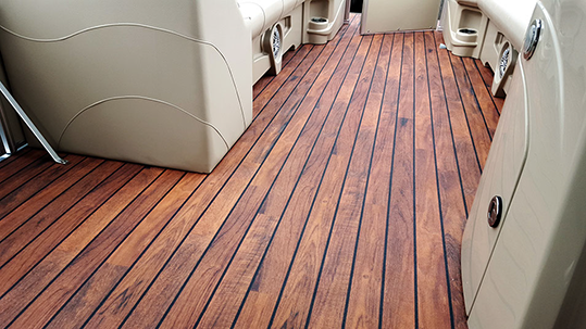 G‑Floor Outdoor & Marine flooring, a product of Better Life Technology, is the most durable marine flooring available for boaters in the recreational marine industry. Our flooring is created out of composite polyvinyl, meaning it won’t peel apart or snag. It has superb moisture protection, and will not mold or crack under any weather condition. G‑Floor Outdoor & Marine flooring offers supreme graphic capabilities with improved clarity, resolution, and substantial UV resistance. We print underneath the polyvinyl, not on top or in between. Because of this crucial difference, the images cannot be scratched off or damaged by heavy traffic. Our advanced top coat provides additional UV and surface protection, so our high quality images last far longer. We offer over 22 stunning patterns and colors, designed to look like authentic wood grain patterns, teak, weaves, leather, and also offer custom options, giving you the sharpest quality flooring available to the market. G‑Floor Outdoor & Marine flooring is slip resistant and UV stable for long term sun exposure. Equipped with a unique spun bound backing, G‑Floor Outdoor & Marine flooring easily absorbs flooring imperfections, installs to any substrate and leaves you with a more cushioned feel. Spend more time enjoying your boat and less time maintaining it with easy care G‑Floor Outdoor & Marine flooring.